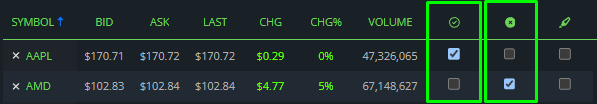 Watch List – Use these filters to include (‘Only’) or exclude (‘Omit’) flow based on your Watch List. Activating this function is a two-step process. First, set up your Watch List under the Watch List tab and select the stocks you want to see in the options flow (use the green checkmark icon for ‘ONLY’) and stocks you want to remove from the flow (use the ‘X’ icon for ‘OMIT’) .